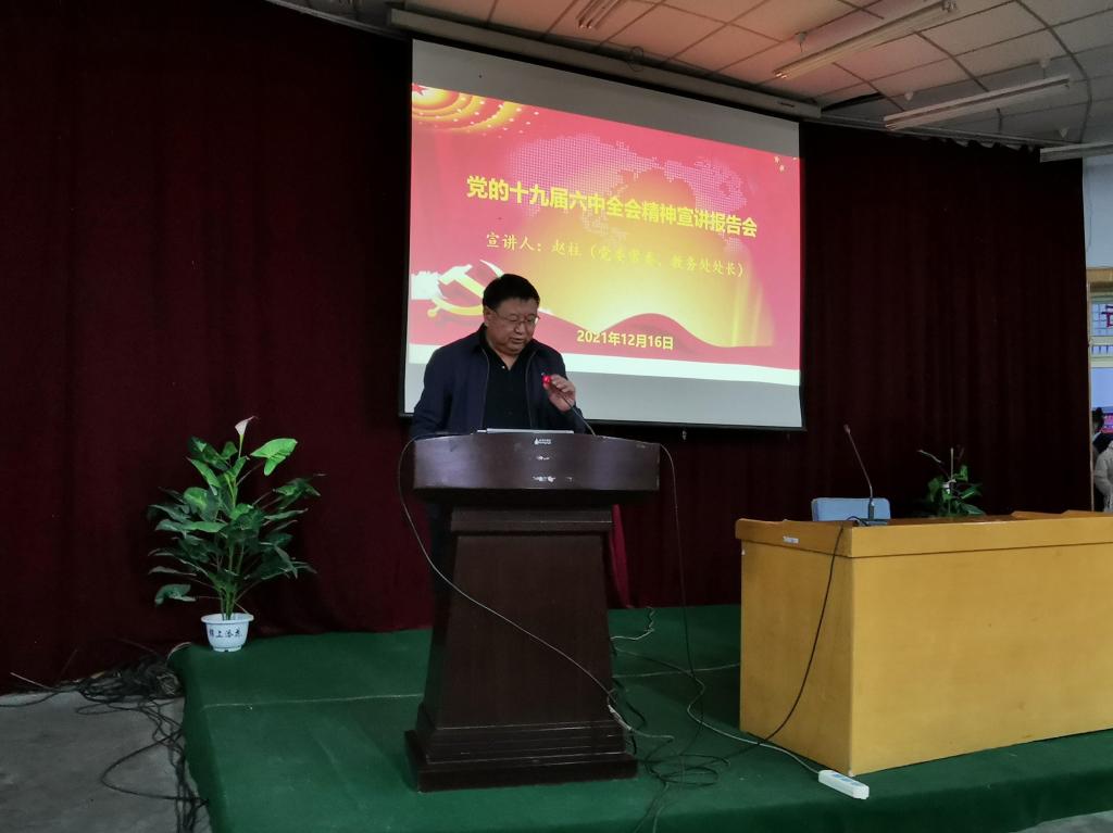 12月16日下午,公司党委常委、教务处处长赵柱在学术二厅为太阳成集团tyc33455cc、经济管理公司师生作党的十九届六中全会精神宣讲报告。320名师生参加了宣讲报告会。