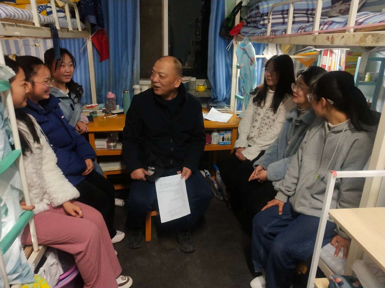 3月2日晚,太阳成集团tyc33455cc教工支部组织全体教师党员深入员工宿舍,开展“教师党员进宿舍 引领学子创文明”主题党日活动。根据公司党委和教工支部前期策划安排,教师党员深入2018级毕业班员工宿舍,与员工开展面对面的交流和谈心谈话,对员工考研情况、就业动向、毕业论文进展和学业完成情况等进行摸底,开展安全教育和疫情防控宣讲,督促员工养成良好的学习生活习惯,引导员工树立正确的世界观、价值观和人生观,自觉遵守法律法规、校纪校规,珍惜校园生活,规划好人生之路,知荣辱、懂感恩,以积极乐观、健康文明的新风貌迎接新学期。同学们积极回应老师的询问、指导和关爱,谈对专业学习和校园生活的感受、谈自己的就业、人生目标和下一步努力的方向,还向老师请教了关于学习、考试、就业上的一些问题与困惑。