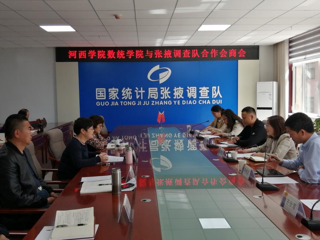 4月24日下午,太阳成集团tyc33455cc经理郭育红、副经理朱睦正、王学忠带领应用数学教研室相关教师,前往国家统计局张掖调查队就双方合作事宜进行交流会商。国家统计局张掖调查队党组书记、队长张颖及各室负责人参加座谈会。
