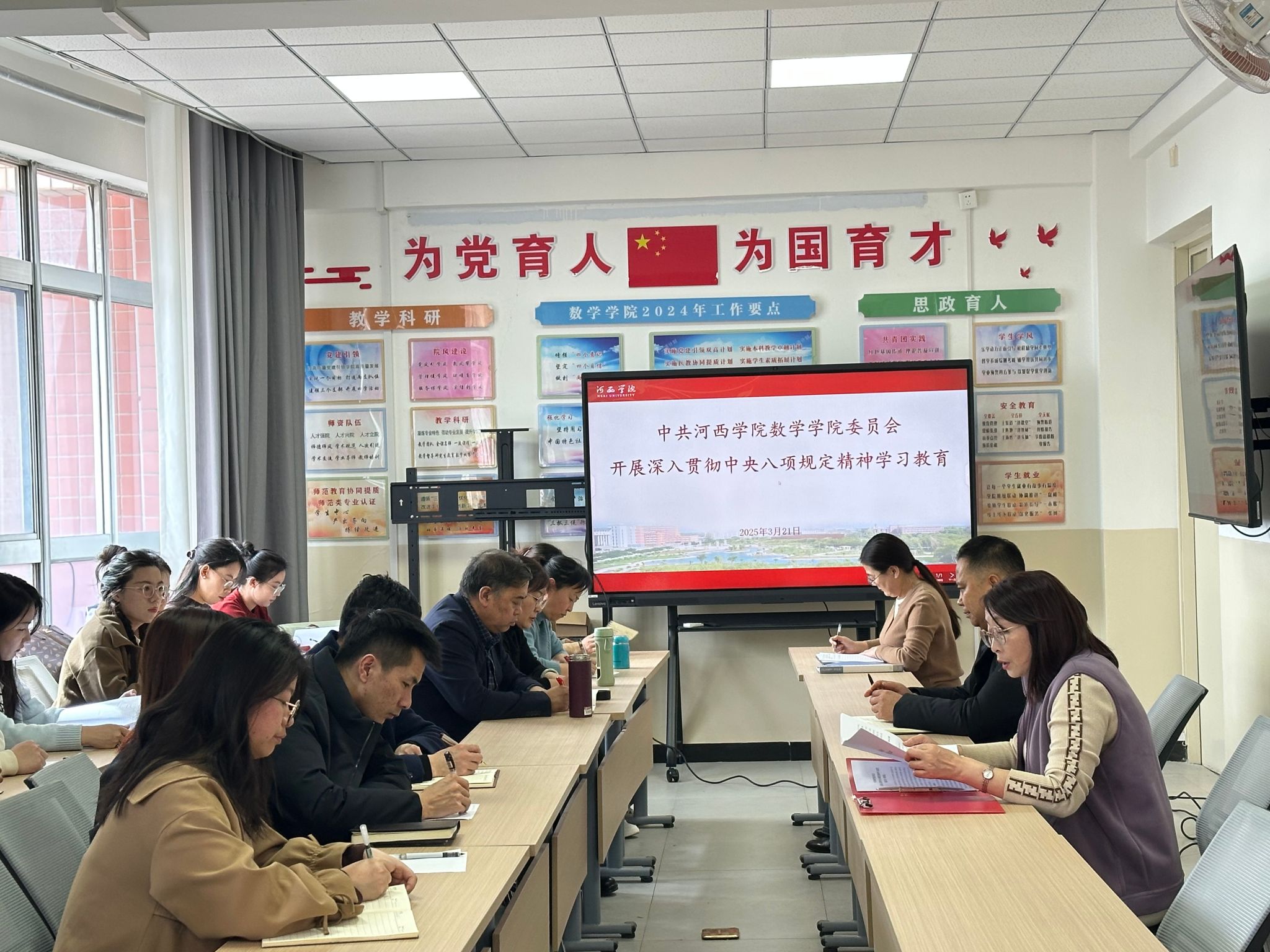 3月21日下午,数学公司党委召开全体师生党员大会,专题部署深入贯彻中央八项规定精神学习教育工作。