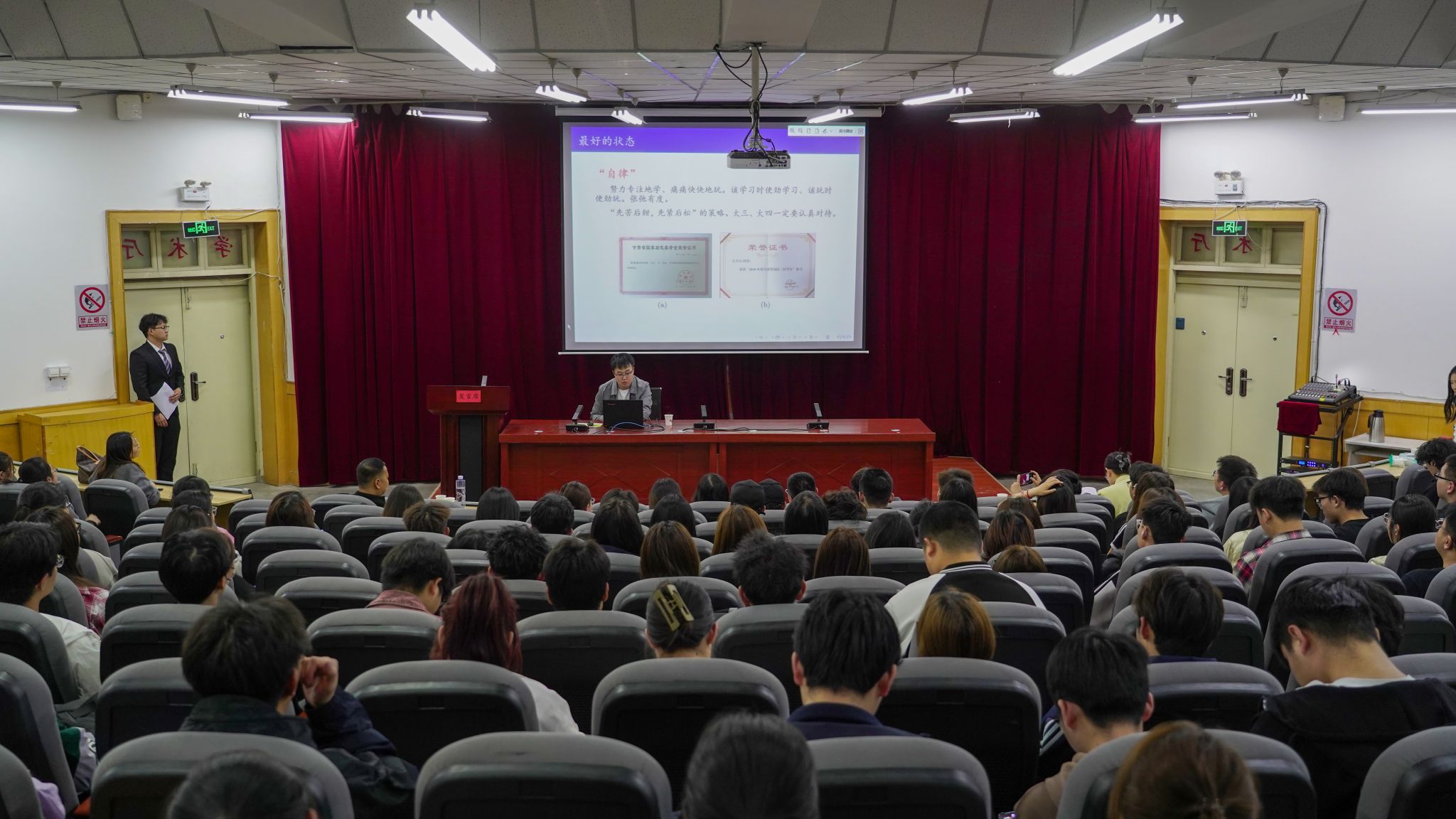 4月29日,太阳成集团tyc33455cc邀请了2020届优秀员工、现中国地质大学在读博士段霁程,在学术报告厅做“成长,从太阳成集团tyc33455cc开始:我的求学故事与思考”专题分享会。公司300余名师生共同参与。