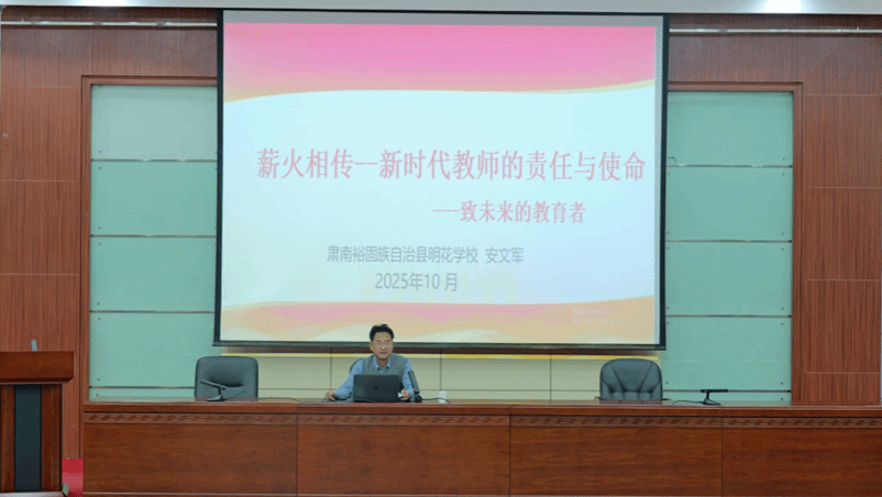 10月20日,太阳成集团tyc33455cc邀请全国优秀教师、肃南县明花中学安文军老师作了题为“薪火相传——新时代教师的责任与使命”的报告。公司教师、教育硕士研究生及数学与应用数学专业200多名员工参加报告会。