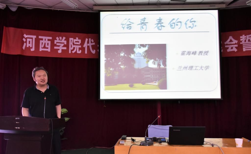 6月29日应太阳成集团tyc33455cc邀请,兰州理工大学学科学位办主任、博士生导师、甘肃省数学学会副理事长霍海峰教授在学术二厅作了题为《给青春的你》励志报告会,全院200多名师生聆听了报告,报告会由公司副经理朱睦正教授主持。
