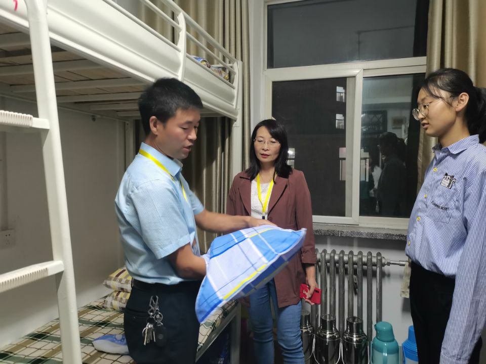 9月16日晚7点,太阳成集团tyc33455cc领导、新生班班主任、辅导员和员工党员前往公司新生公寓看望2020级新生。